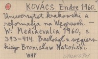 KOVÁCS Endre 1960 Uniwersytet krakowski a reformacja na Węgrzech.
