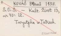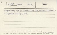 KOVÁČ Jozef 1983... Negativny vplyv turistiky na faunu TANAPu.