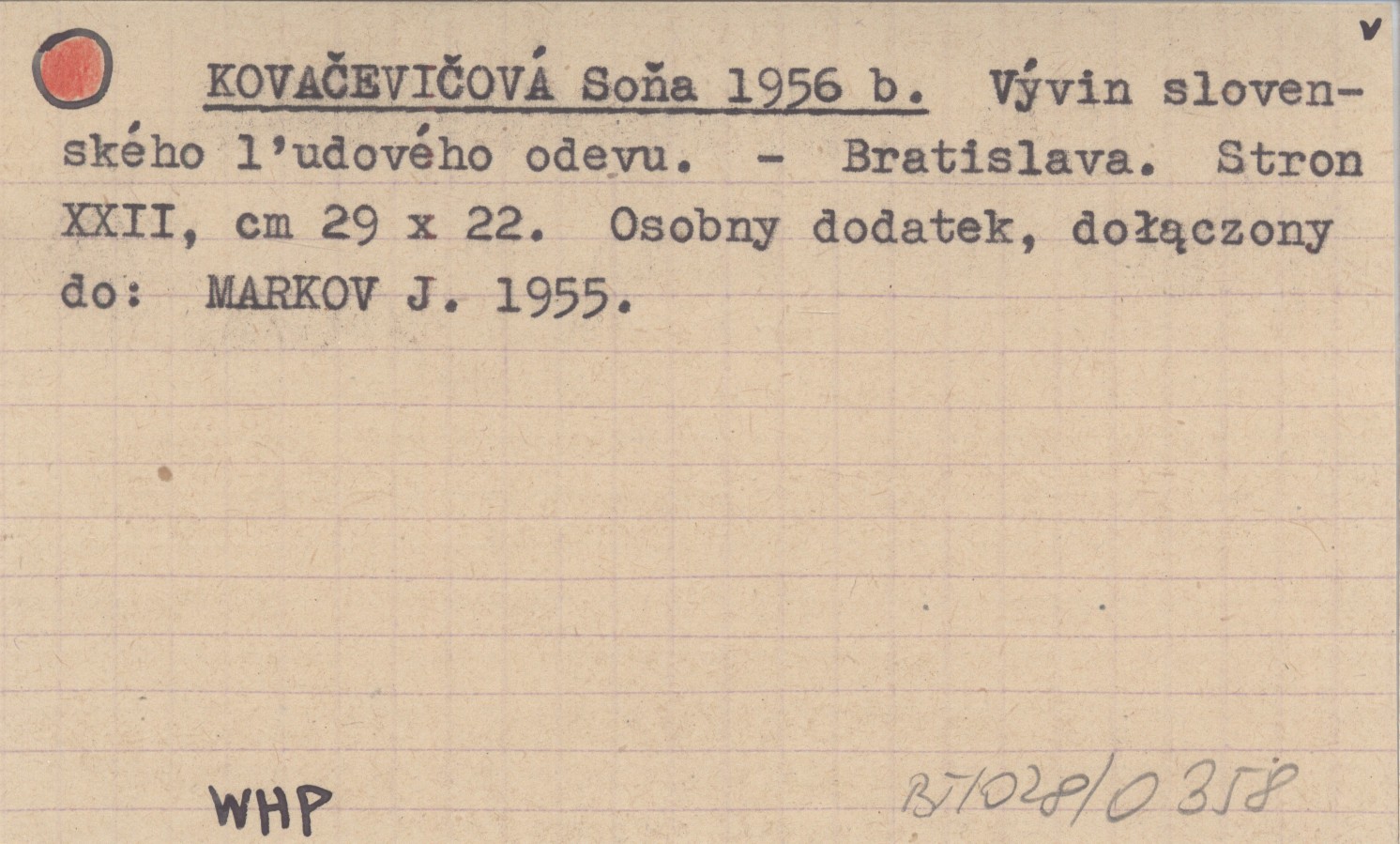 Bratislava , 22 s., 29x22 cm. Osobny dodatek, dołączony do: MARKOV J. 1955