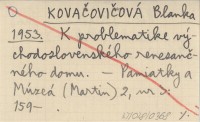 KOVAČOVIČOVÁ Blanka 1953 K problematike východoslovenského renesančného domu.