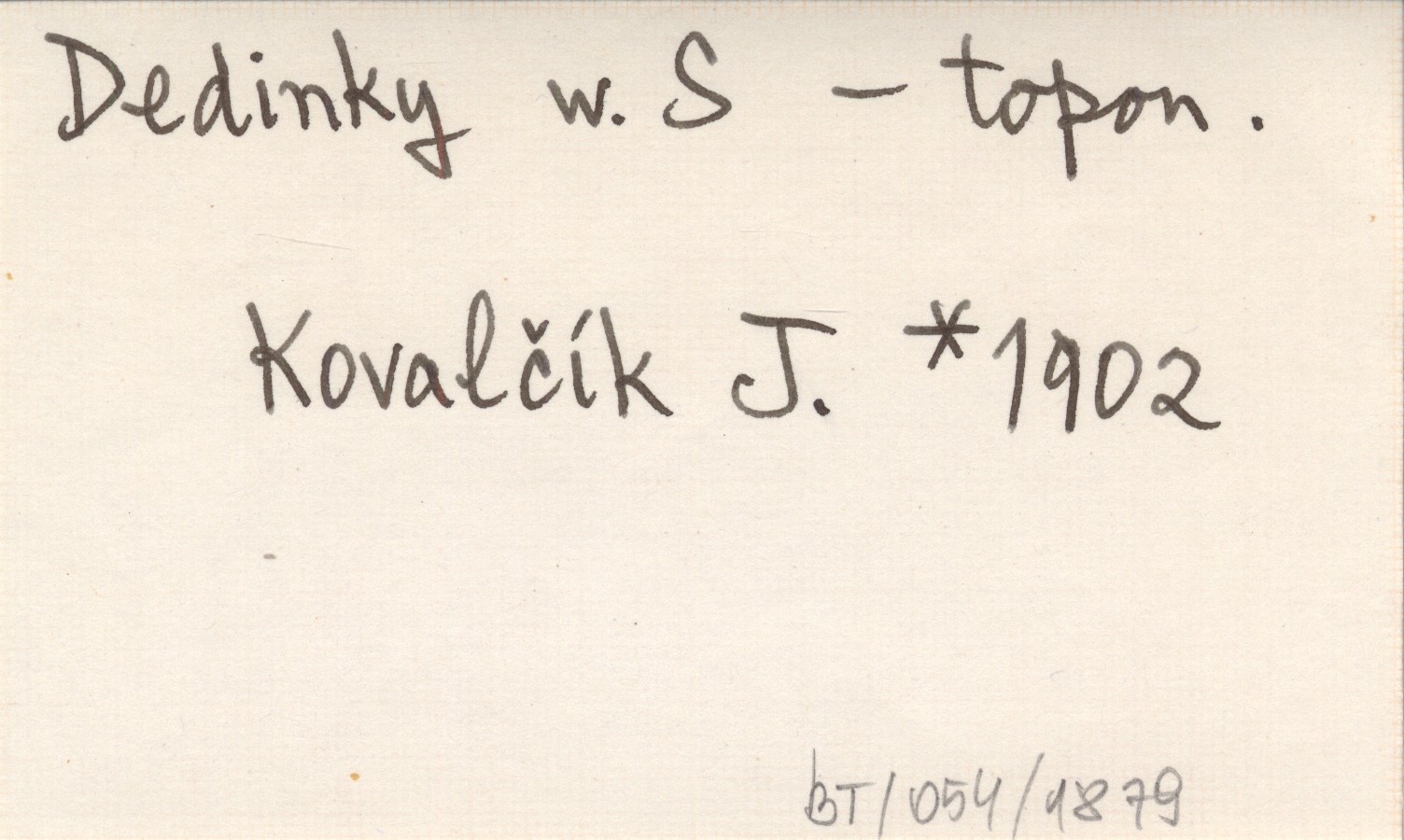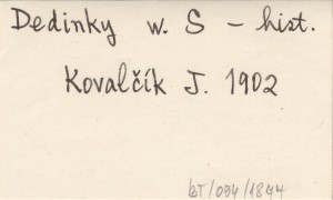 Čas. MSS, 5, nr 1: 1-4. Dzedzinky = Dedinky, zbiorowa nazwa wsi Ištvánovce (Štefanovce) i Imrichovce na pd. Spiszu (na pn. od Dobszyny). Historia, ludność, nazwy geogr., nazwiska, imiona, opowiadanie gwarowe.
