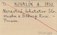 KOVALÍK A. 1932 Nerastné bohatstvo Slovenska a Podkarp. Rusi.