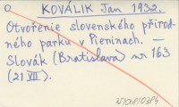 KOVÁLIK Jan 1932 Otvořenie slovenského přirodného parku v Pieninach.