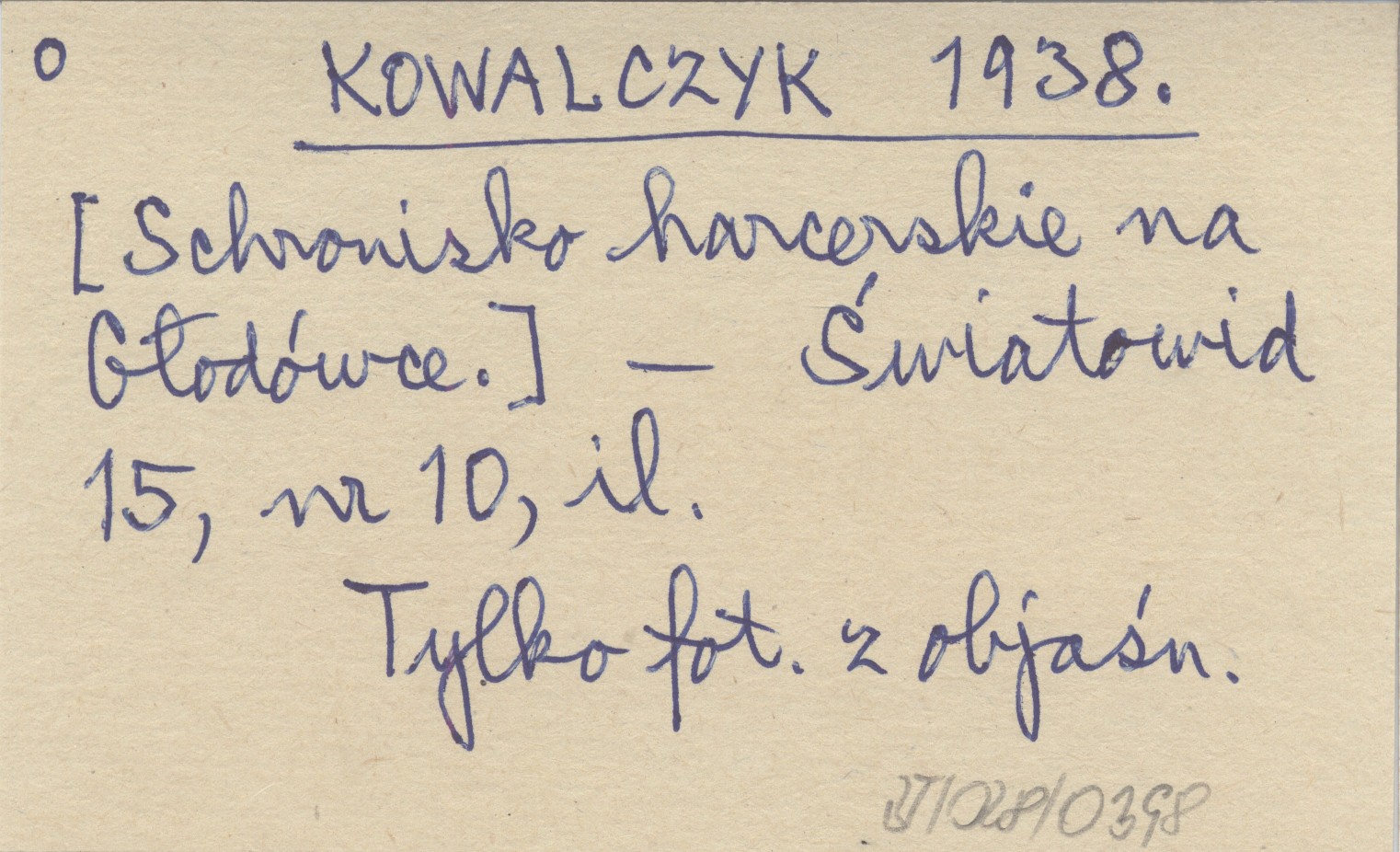 KOWALCZYK 1938 [Schronisko harcerskie na Głodówce.].