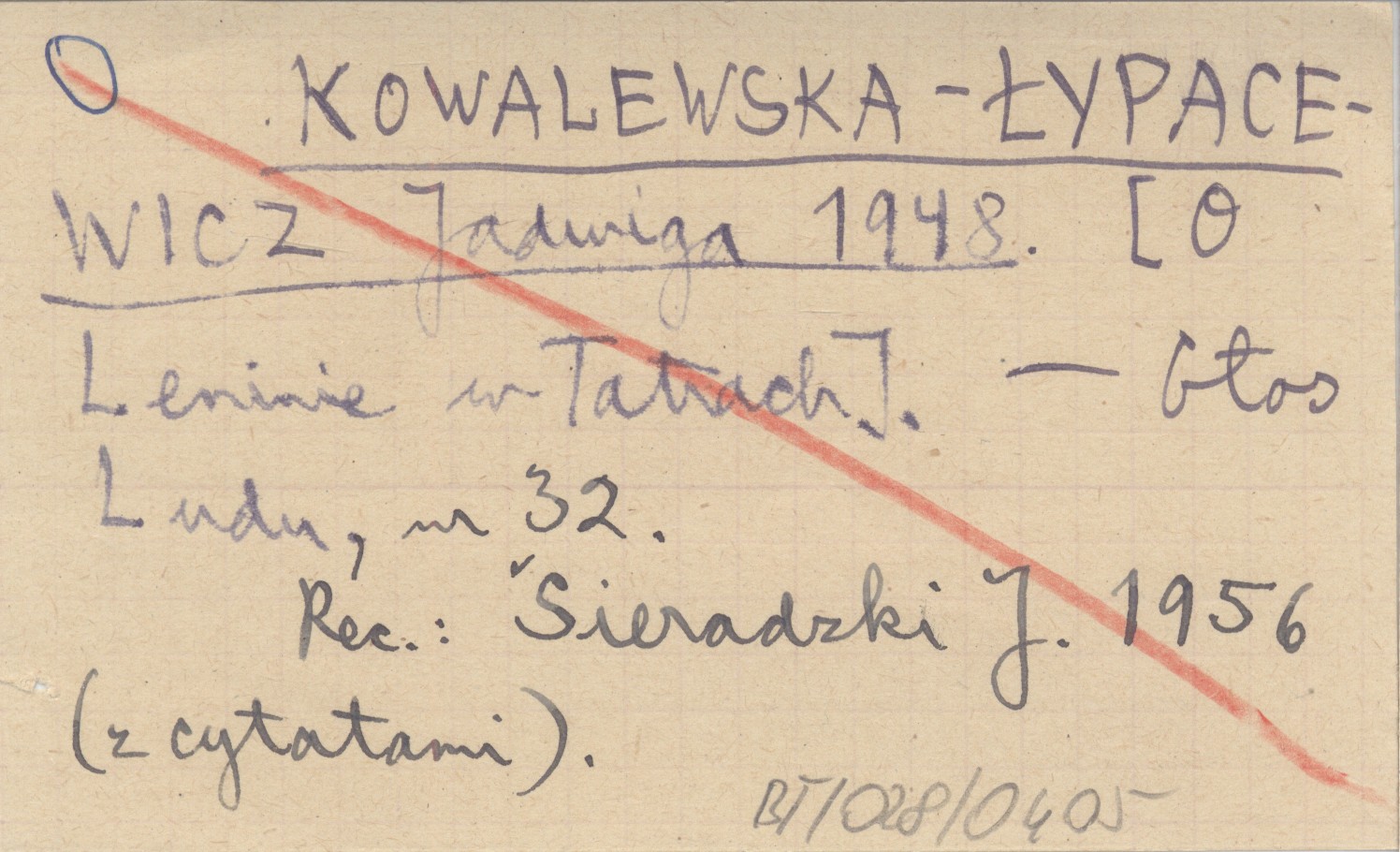 KOWALEWSKA-ŁYPACEWICZ Jadwiga 1948 [O Leninie w Tatrach].