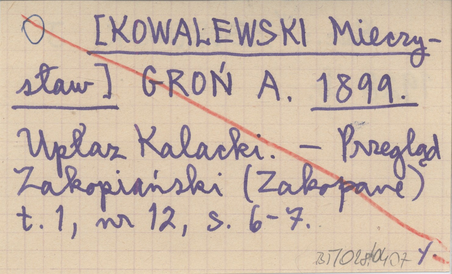 [KOWALEWSKI Mieczysław] GROŃ, A. ; 1899 Upłaz Kalacki.