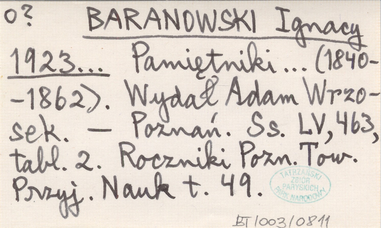 Projekt Digitalizacja fiszek z Bibliografią Tatr i Podtatrza Witolda Henryka Paryskiego jest finansowany ze środków Ministra Kultury i Dziedzictwa Narodowego oraz Tatrzańskiego Parku Narodowego.