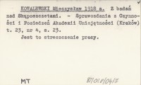 KOWALEWSKI Mieczysław 1918 a Z badań nad Skąposzczetami.