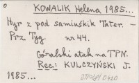 KOWALIK Helena 1985... Hyr z pod samiuśkik Tater.