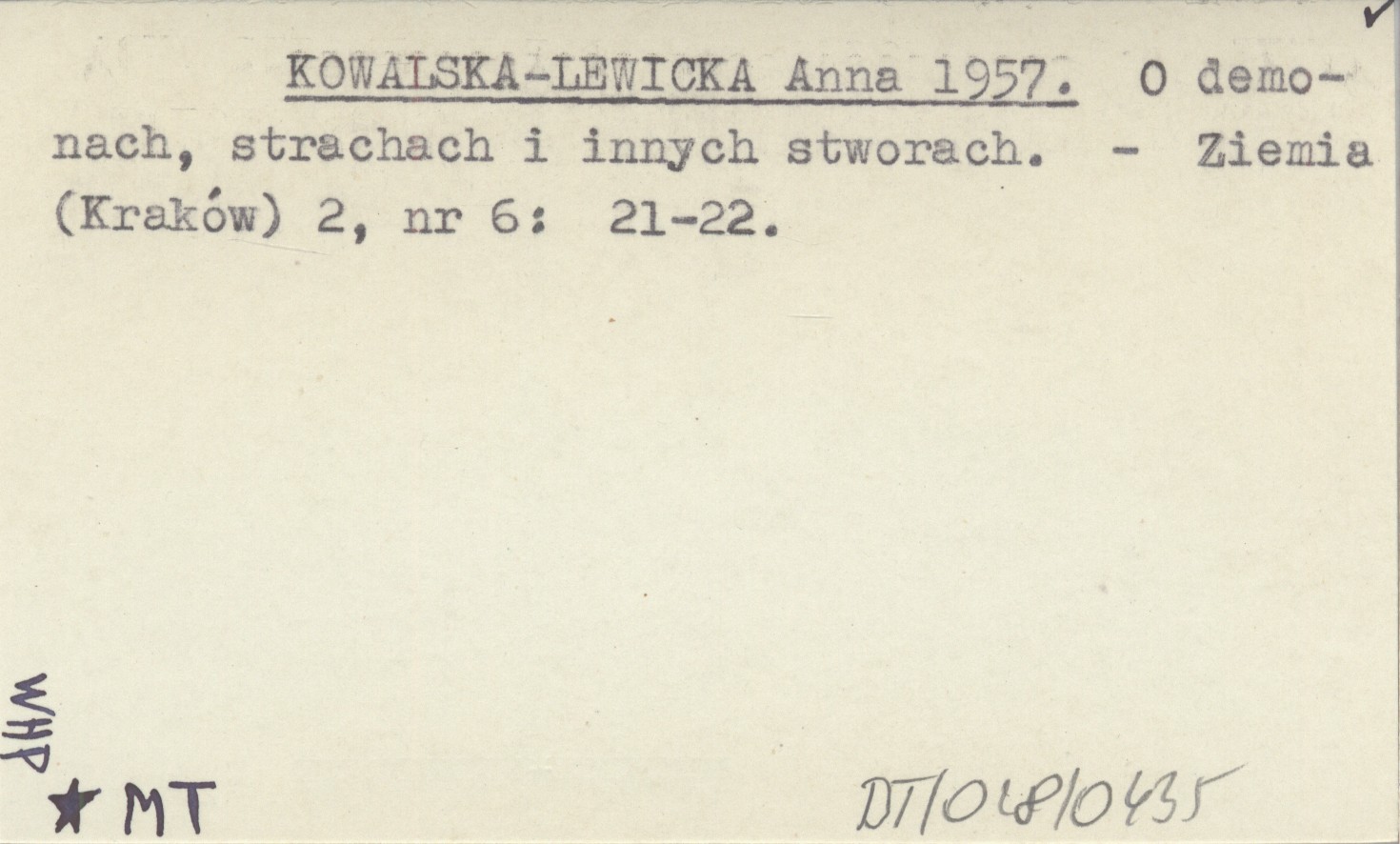 KOWALSKA-LEWICKA Anna 1957 O demonach, strachach i innych stworach.