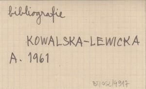 KOWALSKA-LEWICKA Anna 1961 La Section Polonaise de la Commission Internationale pour l'étude de la culture populaire de la région carpatique (compte rendu de l'année 1961).