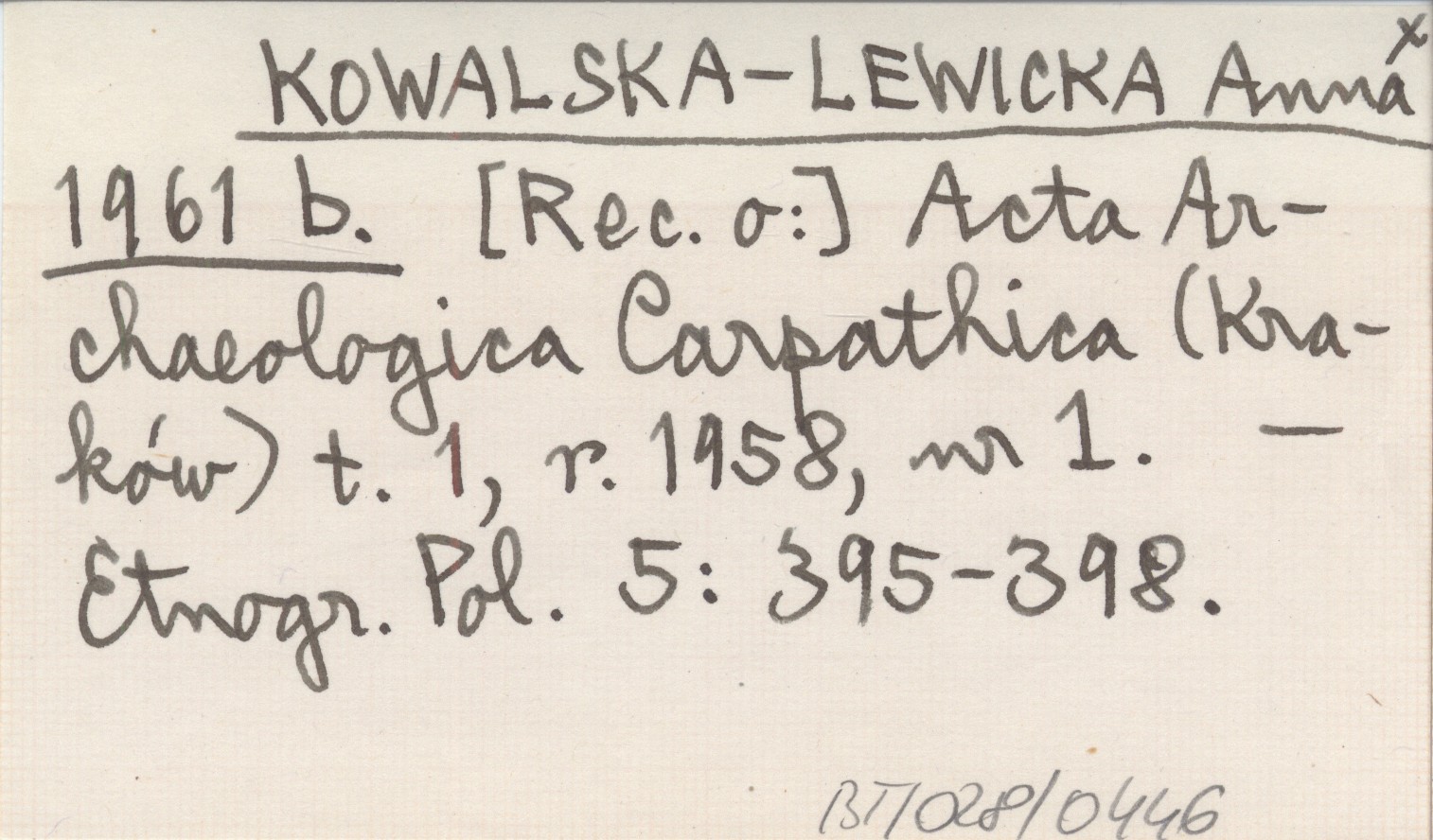 KOWALSKA-LEWICKA Anna 1961 b Acta Archeologica Carpathica (Kraków) t. 1, r. 1958, nr 1.