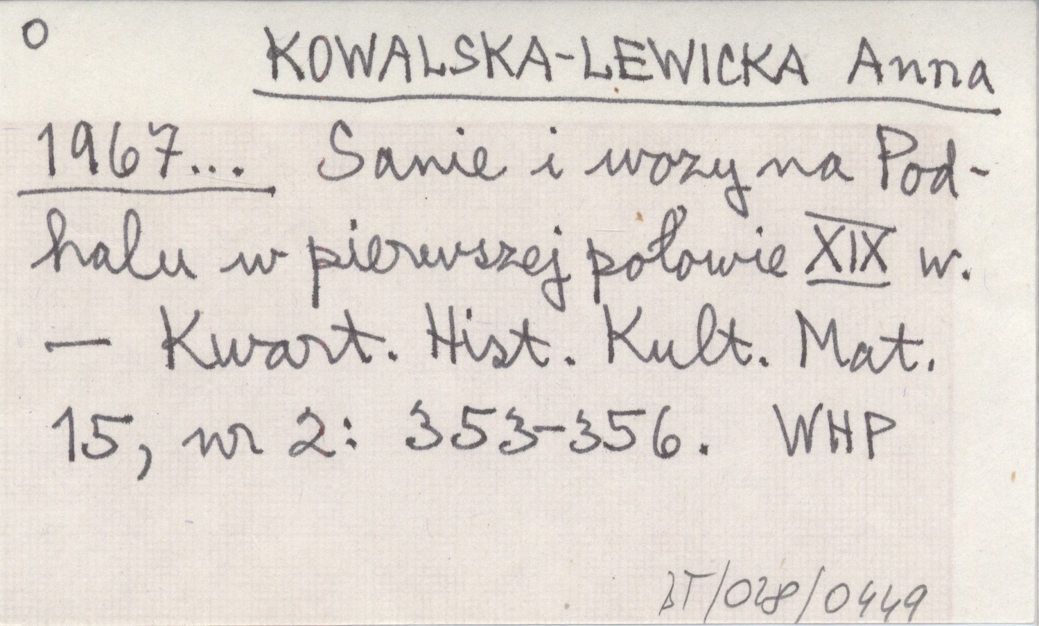 KOWALSKA-LEWICKA Anna 1967... Sanie i wozy na Podhalu w pierwszej połowie XIX w.