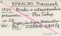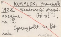 KOWALSKI Franciszek 1925 Wiadomości organizacyjne.