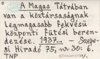 A Magas Tátrában von a köztársaságnak legmagasabb fekvésü központi fütési berendezése. 1937...