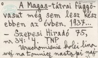 A Magas -tátrai függövasut még sem lesz kész ebben az évben. 1937...