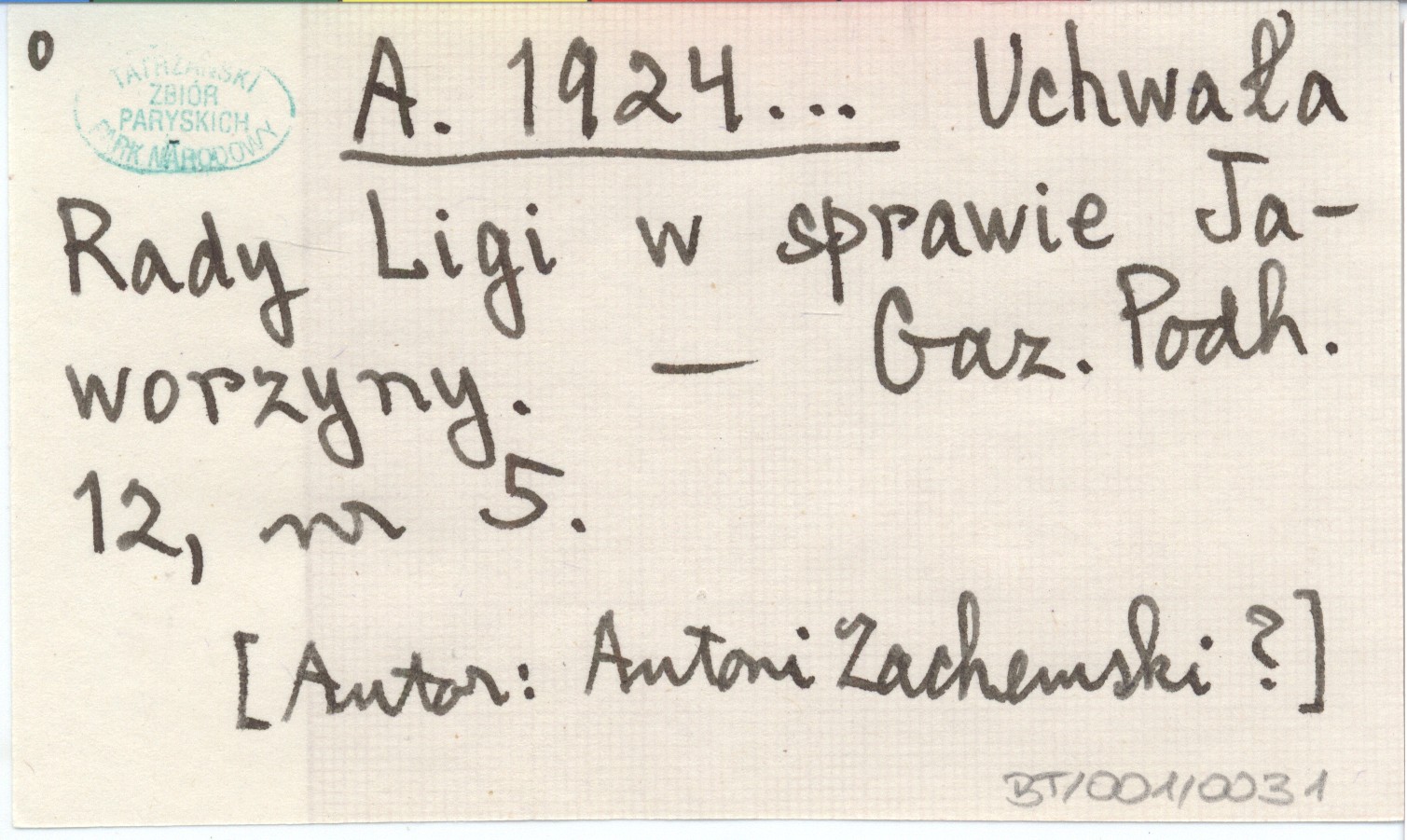 Projekt Digitalizacja fiszek z Bibliografią Tatr i Podtatrza Witolda Henryka Paryskiego jest finansowany ze środków Ministra Kultury i Dziedzictwa Narodowego oraz Tatrzańskiego Parku Narodowego.