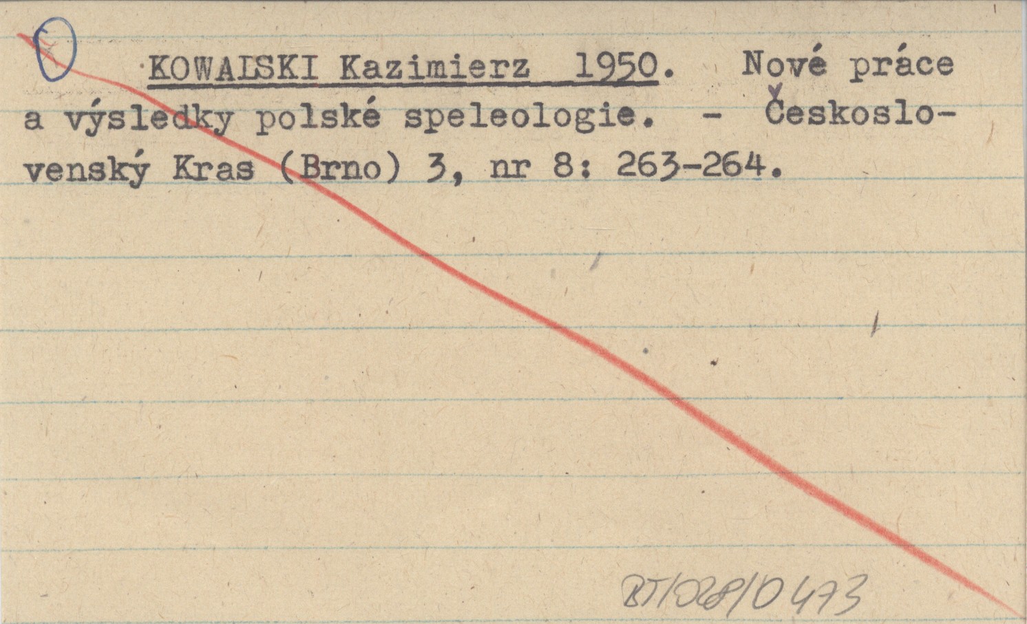 KOWALSKI Kazimierz 1950 Nové práce a výsledky polské speleologie.