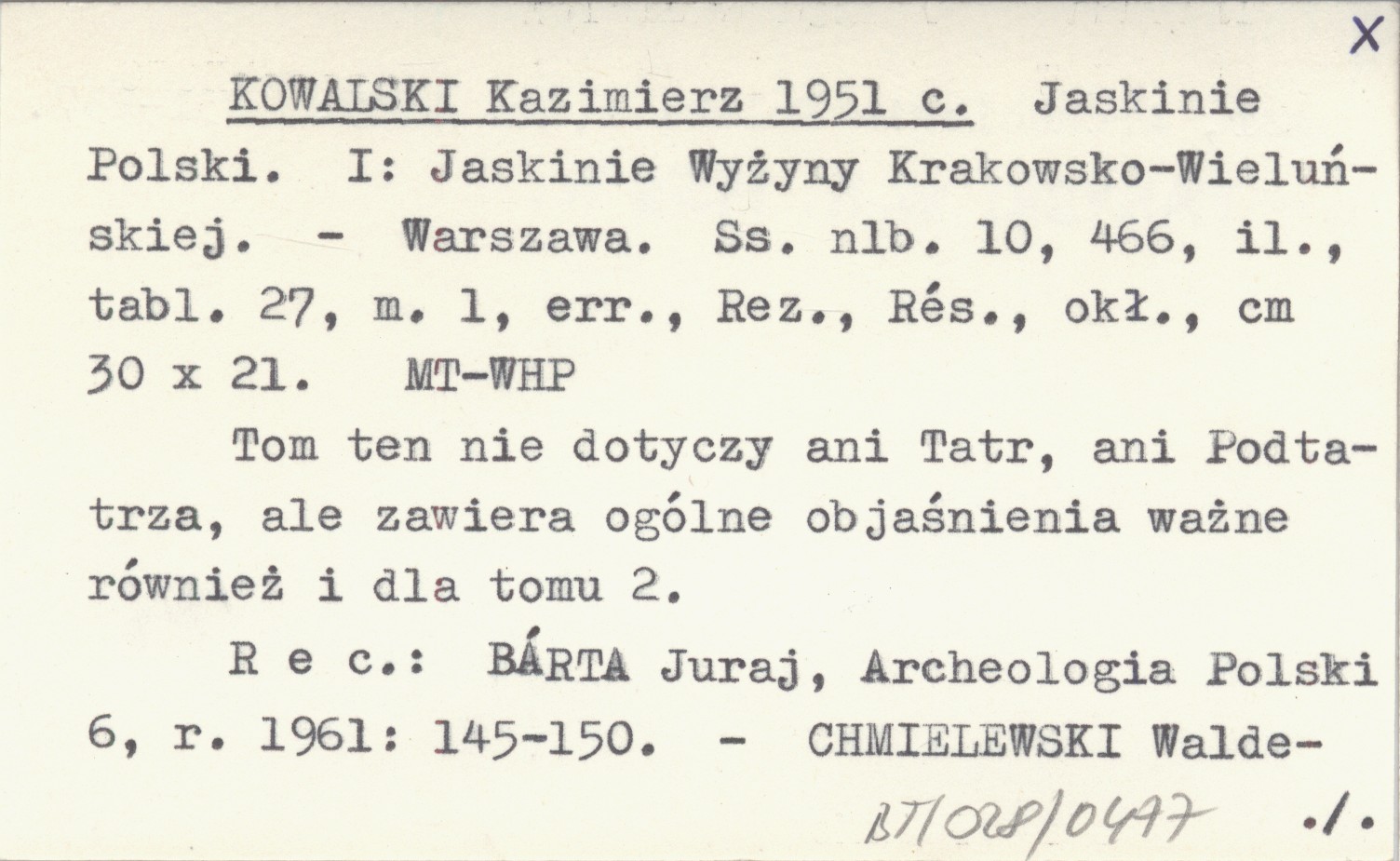 KOWALSKI Kazimierz 1951 c Jaskinie Polski. I: Jaskinie Wyżyny Krakowsko-Wieluńskiej.