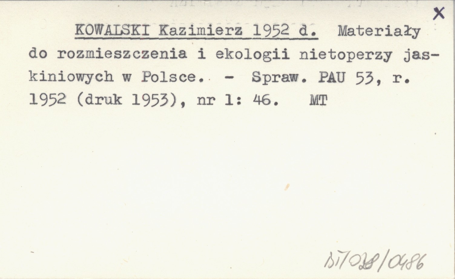 KOWALSKI Kazimierz 1952 d Materiały do rozmieszczenia i ekologii nietoperzy jaskiniowych w Polsce.