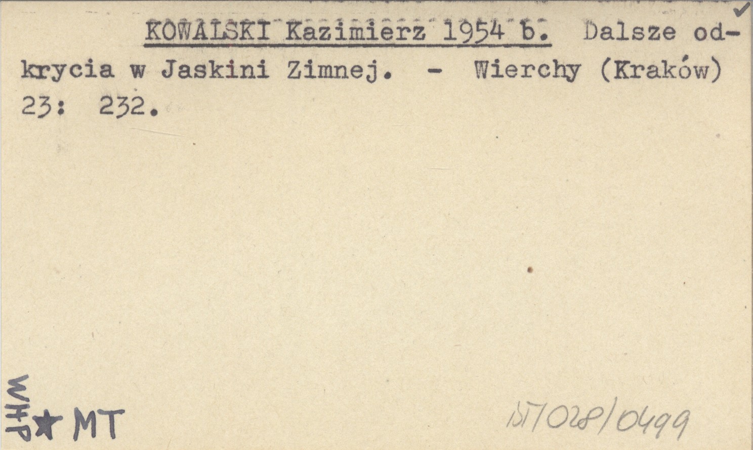 KOWALSKI Kazimierz 1954 b Dalsze odkrycia w Jaskini Zimnej.