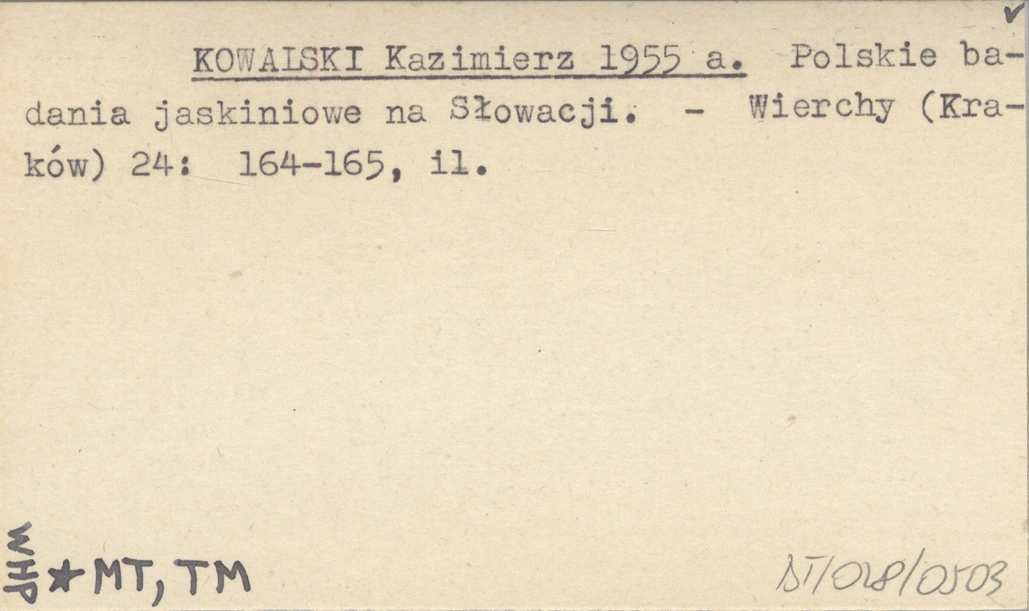 KOWALSKI Kazimierz 1955 a Polskie badania jaskiniowe na Słowacji.