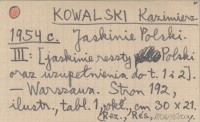 KOWALSKI Kazimierz 1954 c Jaskinie Polski. III: [jaskinie reszty Polski oraz uzupełnienia do t. 1 i 2].