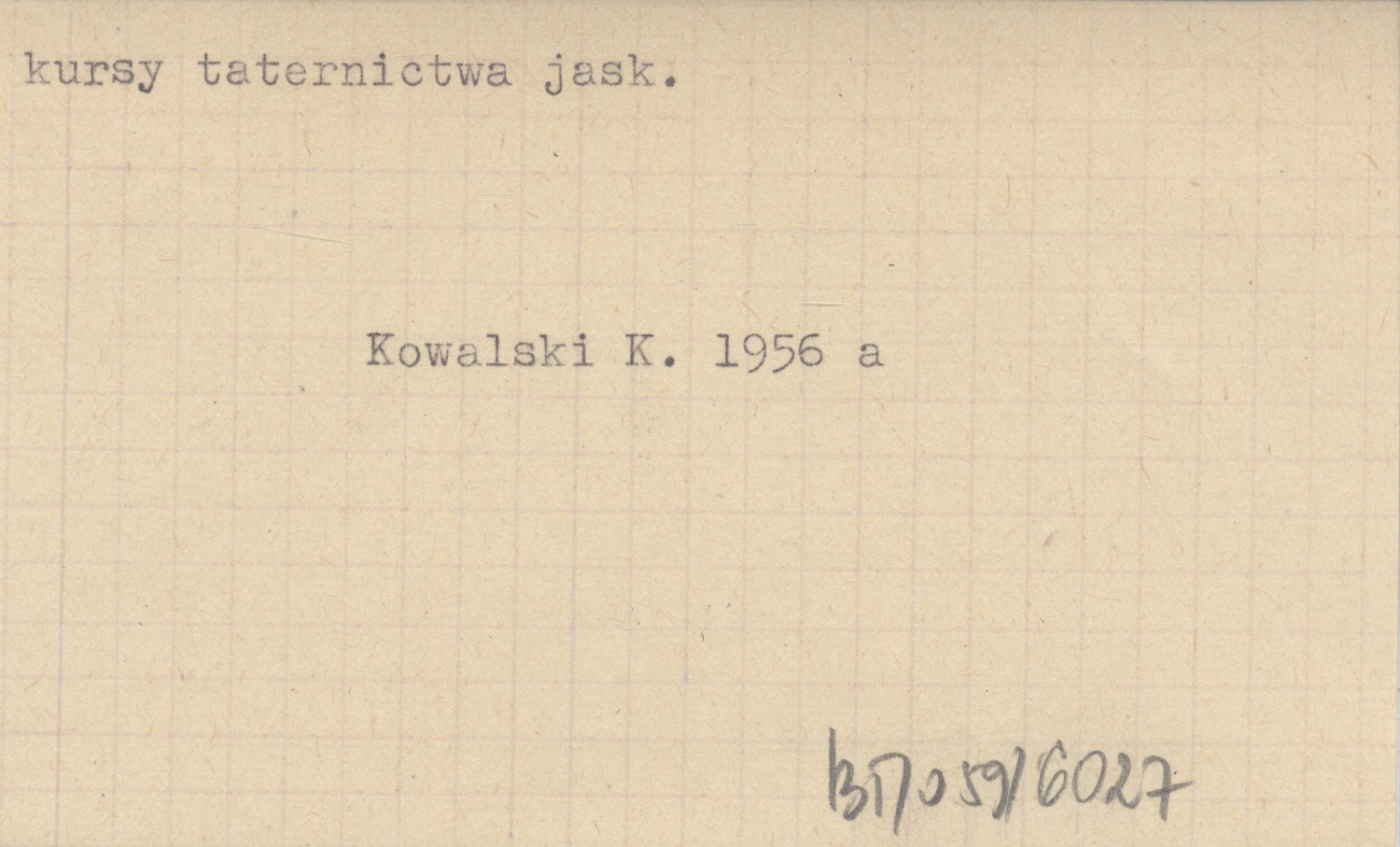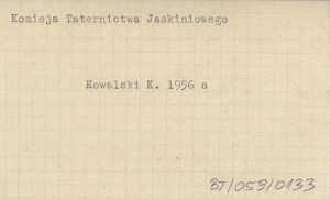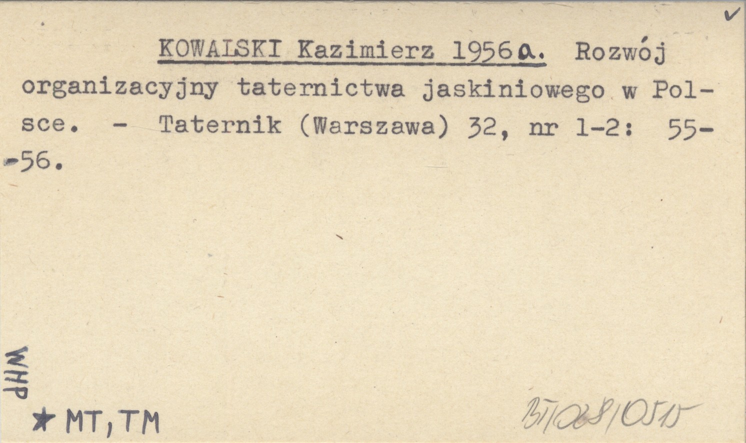 KOWALSKI Kazimierz 1956 a Rozwój organizacyjny taternictwa jaskiniowego w Polsce.