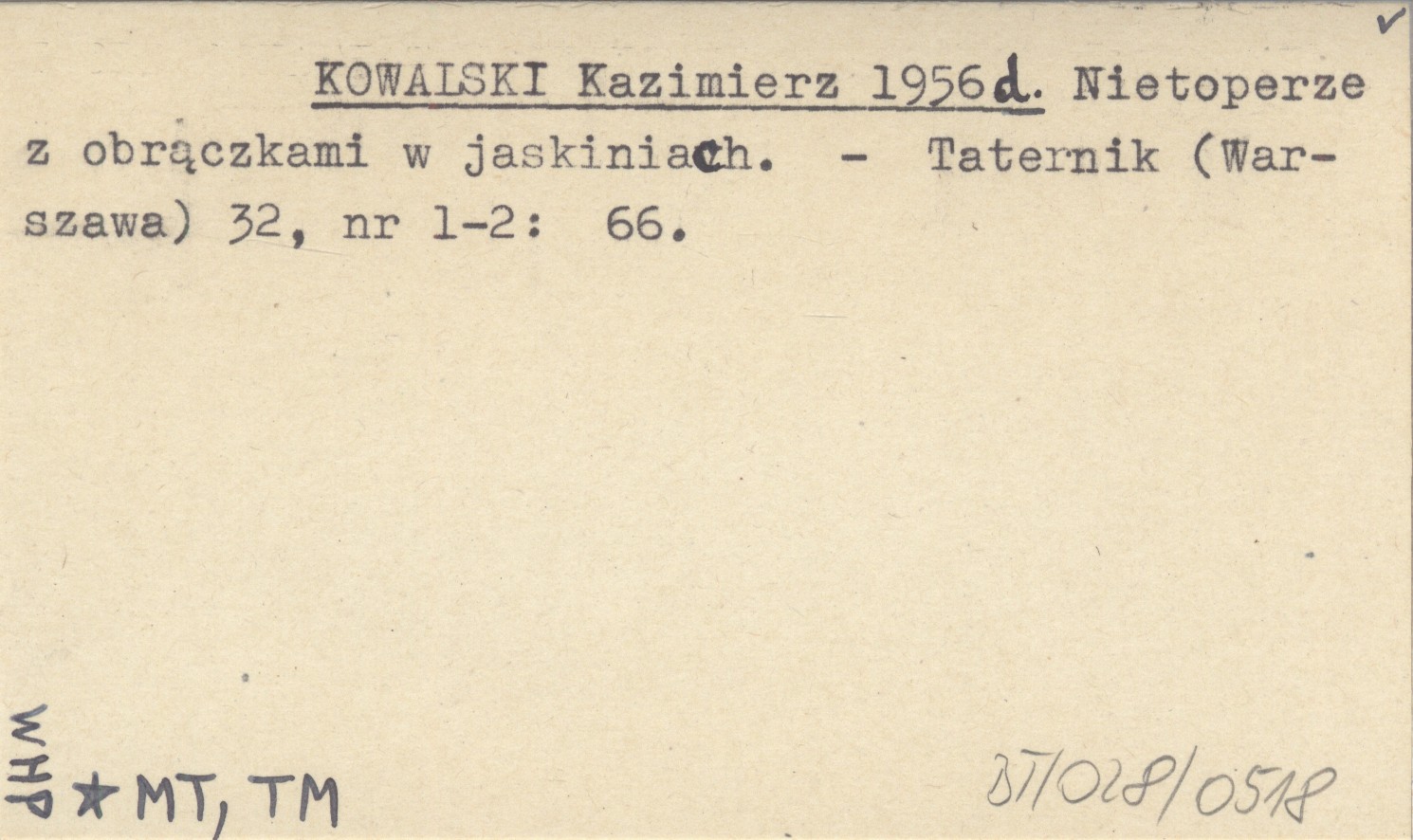 KOWALSKI Kazimierz 1956 d Nietoperze z obrączkami w jaskiniach.