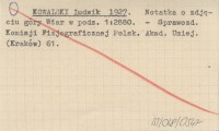 KOWALSKI Ludwik 1927 Notatka o zdjęciu góry Wżar w podz. 1:2880.