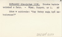 KOWALSKI Stanisław 1938 Trzeba będzie uciekać z Tatr.