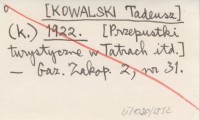 (k.) [KOWALSKI Tadeusz] 1922 [Przepustki turystyczne w Tatrach itd.].