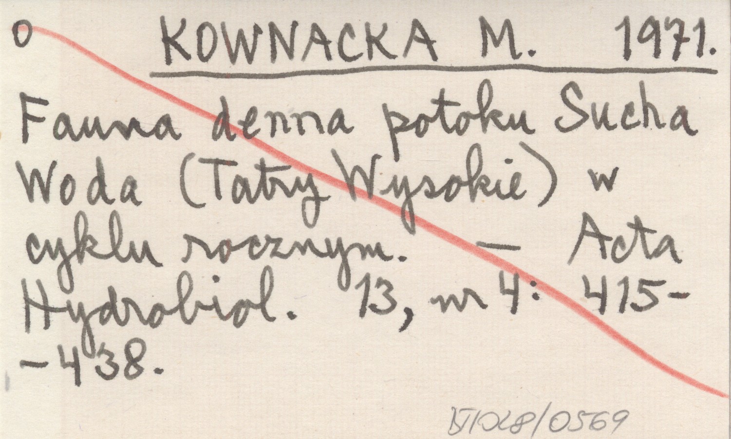 KOWNACKA M. 1971 Fauna denna potoku Sucha Woda (Tatry Wysokie) w cyklu rocznym.