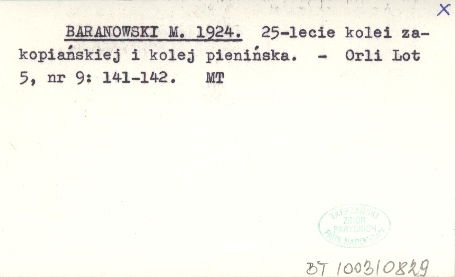 BARANOWSKI M. 1924 25-lecie kolei zakopiańskiej i kolej pienińska.