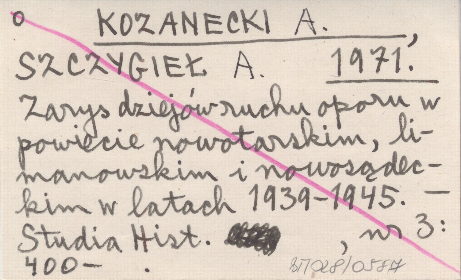 KOZANECKI A. SZCZYGIEŁ, A. ; 1971 Zarys dziejów ruchu oporu w powiecie nowotarskim, limanowskim i nowosądeckim w latach 1939-1945.