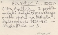 KOZANECKI A. SZCZYGIEŁ, A. ; 1973... Z problematyki antyhitlerowskiego ruchu oporu na Podhalu i Sądecczyźnie 1939-45.