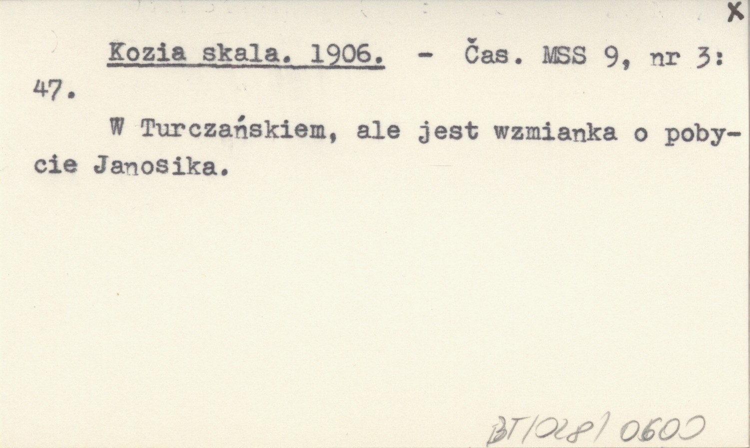 Čas. MSS, 9, nr 3: 47. W Turczańskiem, ale jest wzmianka o pobycie Janosika.