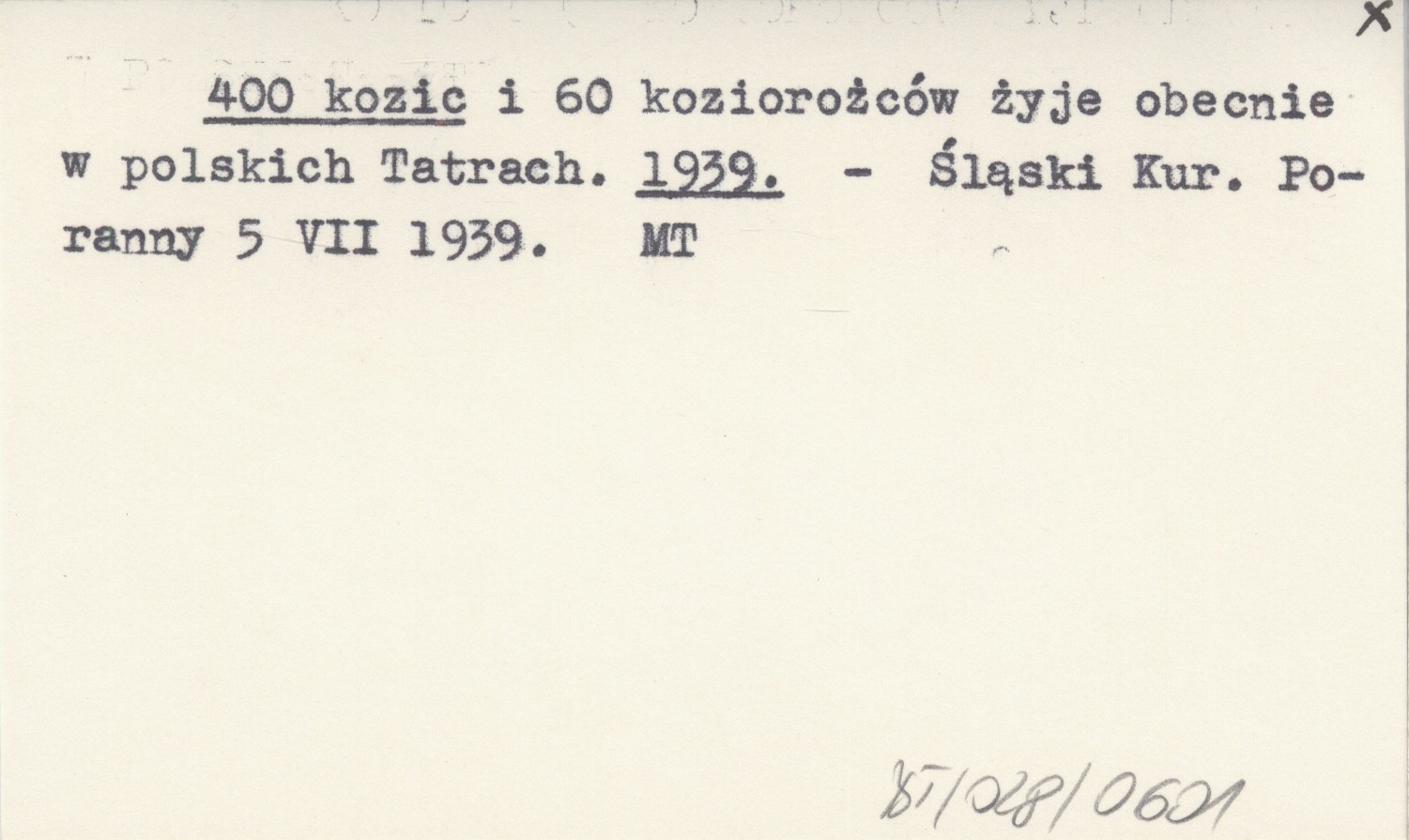400 kozic i 60 koziorożców żyje obecnie w polskich Tatrach. 1939