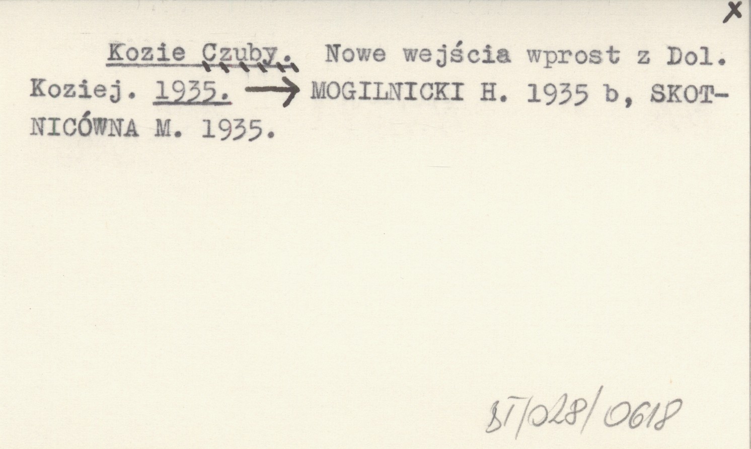 Kozie Czuby. Nowe wejścia wprost z Dol. Koziej. 1935