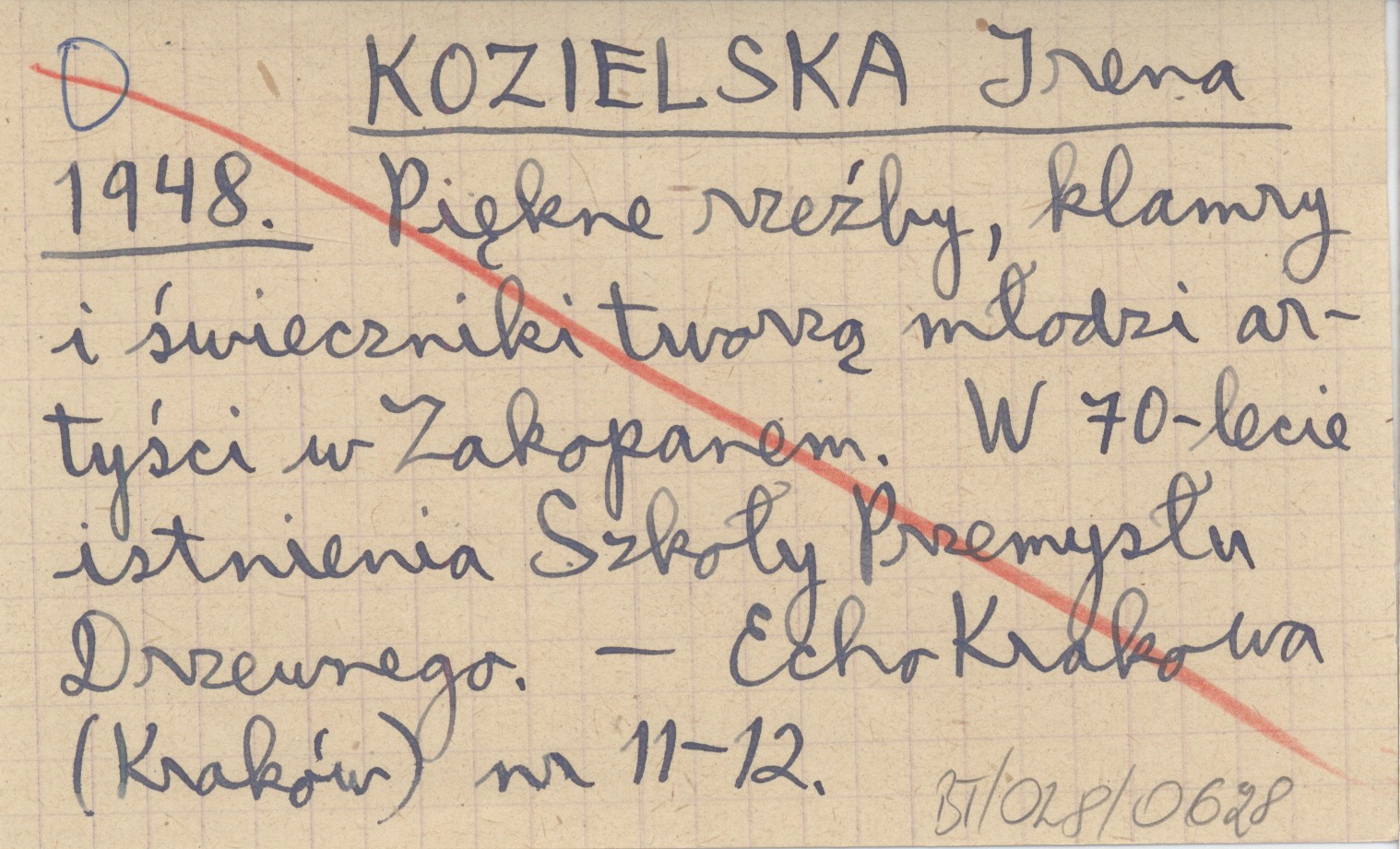 KOZIELSKA Irena 1948 Piękne rzeźby, klamry i świeczniki tworzą młodzi artyści w Zakopanem. W 70-lecie istnienia Szkoły Przemysłu Drzewnego.