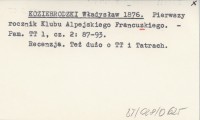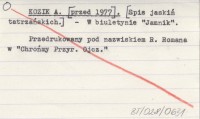 KOZIK A. [przed 1977] [Spis jaskiń tatrzańskich.].