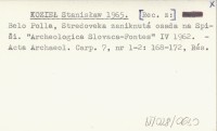 KOZIEŁ Stanisław 1965 Belo Polla, Stredoveka zaniknutá osada na Spiši. "Archeologica Slovaca-Fontes" IV 1962.