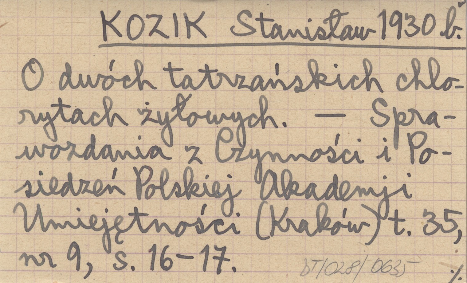 KOZIK Stanisław 1930 b O dwóch tatrzańskich chlorytach żyłowych.