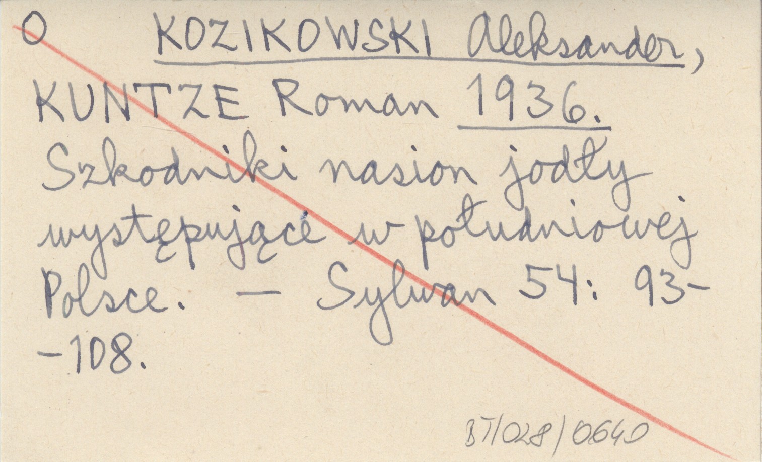 KOZIKOWSKI Aleksander KUNTZE, Roman. ; 1936 Szkodniki nasion jodły występujące w południowej Polsce.