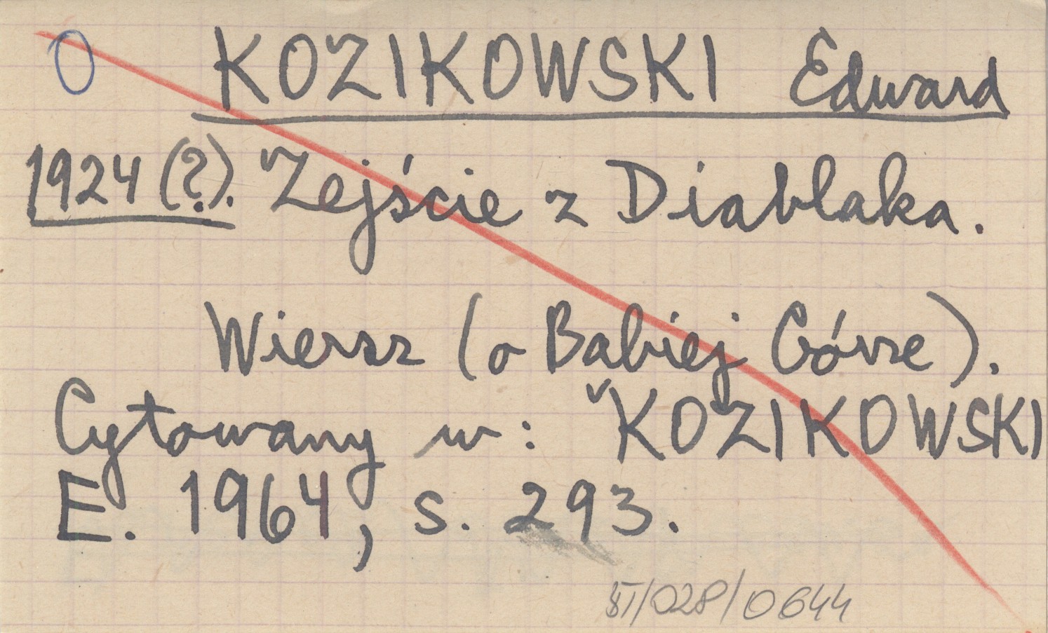 , Wiersz (o Babiej Górze). Cytowany w: KOZIKOWSKI E. 1964, s. 293