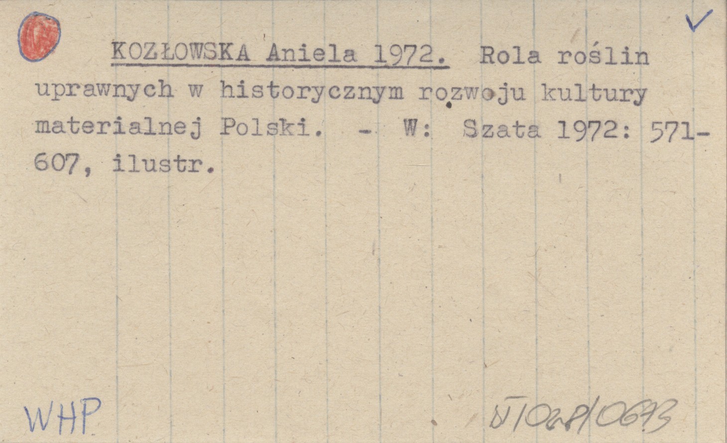 KOZŁOWSKA Aniela 1972 Rola roślin uprawnych w historycznym rozwoju kultury materialnej Polski.