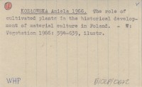 KOZŁOWSKA Aniela 1966 The role of cultivated plants in the historical development of material culture in Poland.