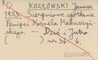 KOZŁOWSKI Janusz 1953 Sierpniowe spotkanie. Pamięci Kornela Makuszyńskiego.
