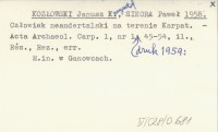 KOZŁOWSKI Janusz Krzysztof SIKORA, Paweł. ; 1958 Człowiek neandertalski na terenie Karpat.