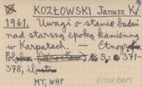 KOZŁOWSKI Janusz Krzysztof 1961 Uwagi o stanie badań nad starszą epoką kamienną w Karpatach.
